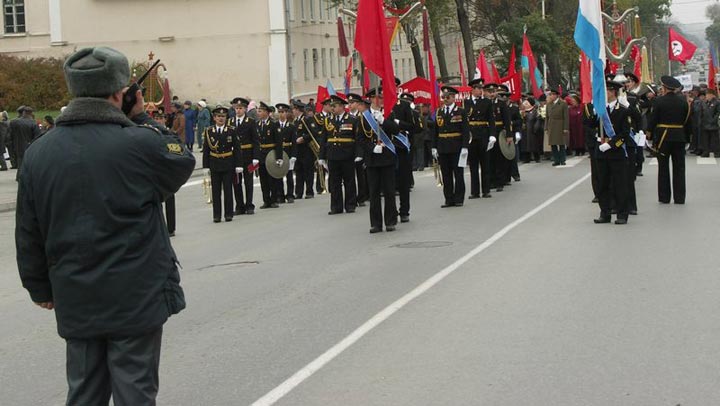 7 октября в Таганроге прошел праздничный парад, организованный местным отделением КПРФ. Как отмечает корреспондент Каспаров.Ru, в этом году парад превратился в настоящий марш протеста.
