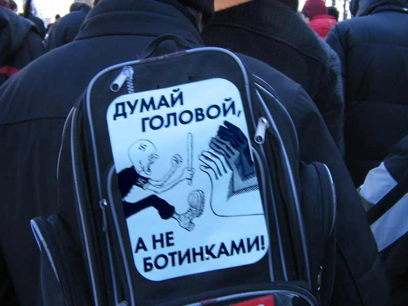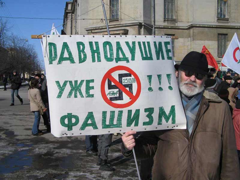"Здесь присутствуют разведчики из числа фашистов, они нас фотографируют. Завтра эти фотографии появятся на их сайтах в Интернете. Точно так же там появилось фото нашего товарища Тимура Качаравы, убитого в прошлом году. Поэтому будьте осторожны, опасайтесь нападения, держитесь вместе", - предупредил участников с трибуны анархист Евгений Орегон.