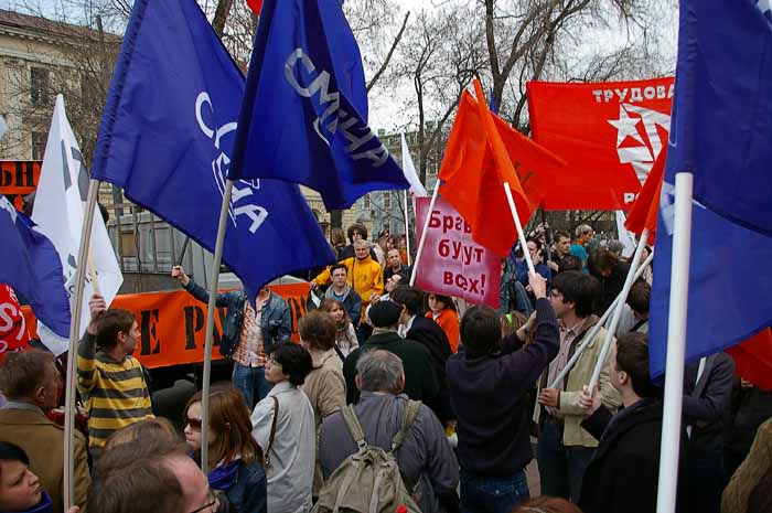 Среди участников митинга - ОГФ, "Смена", "Свободные радикалы", СПС, "Яблоко", "Трудовая Россия".