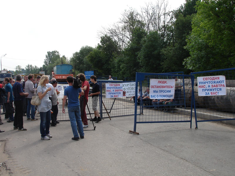 Затем они переместились к штабу строительства в поселке Южное Бутово компании Главмосстрой и блокировали выезды с территории штаба, не пропуская строительную технику.