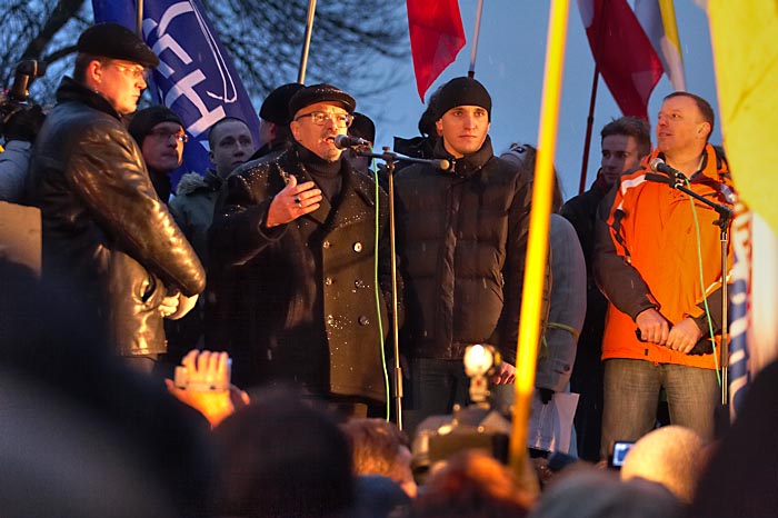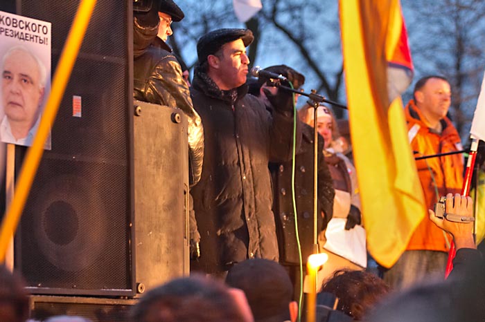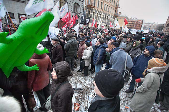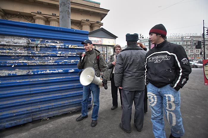 Выступили лидеры коалиции "Другая Россия" Гарри Каспаров и Эдуард Лимонов. Руководитель ОГФ Гарри Каспаров заявил, что 3 марта войдет в историю России. Он напомнил манифестантам, что "после позорного фарса "выборов" Медведев, Путин и Зубков пошли праздновать победу над Россией. "От нас зависит, - сказал он, - когда прекратится этот шабаш, который угрожает России. Свободные люди еще дойдут до Смольного и Кремля и именно их боятся путины, медведевы и матвиенки! Их страх выражается в толпах ОМОНа и десятках задержанных в Москве".