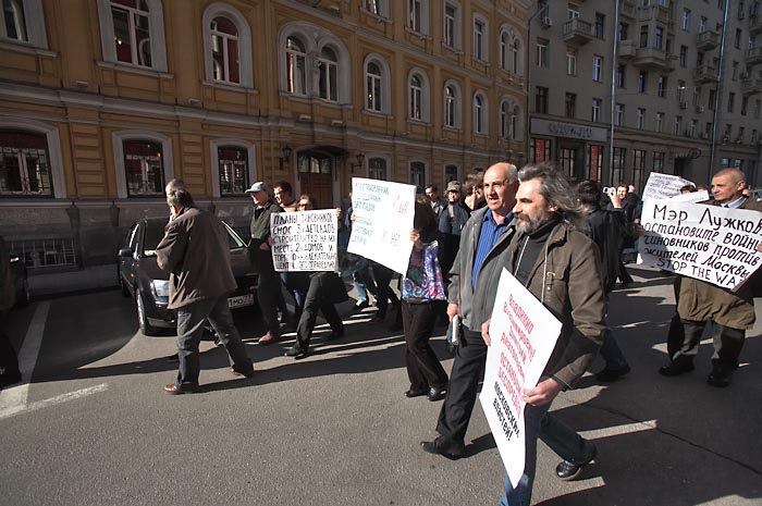 Манифестанты пытались вручить сотрудникам приемной петицию к мэру Москвы Юрию Лужкову с требованием прекратить в столице незаконное уплотнительное строительство. Около 50 участников митинга перекрыли Тверскую с лозунгами "Выйди на улицу, верни себе город!", "Нет точечной застройке". А затем они двинулись к зданию мэрии с тем, чтобы передать мэру Москвы Юрию Лужкову свое заявление с требованием прекратить точечное строительство. Однако попасть за ворота около здания правительства Москвы удалось только части участников акции. Часть же осталась на Тверской улице, так как подъехавший ОМОН успел закрыть ворота.