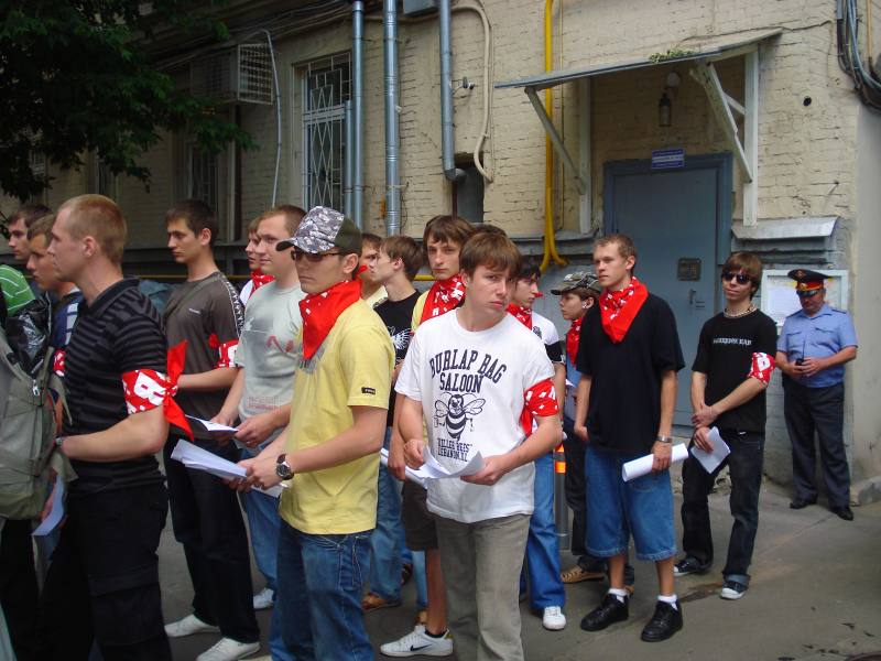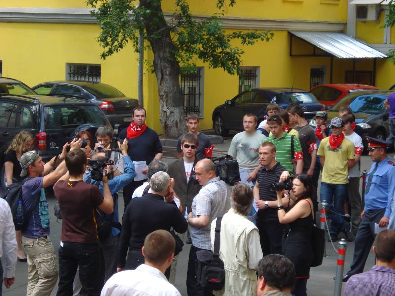 Лидер группы "молодогвардейцев" Дмитрий Бирюков заявил, что они обращались к пресс-службе организаторов пресс-конференции с просьбой аккредитовать представителя МГЕР на пресс-конференцию, но им было отказано. В свою очередь представитель пресс-службы заявил, что такого обращения не было.