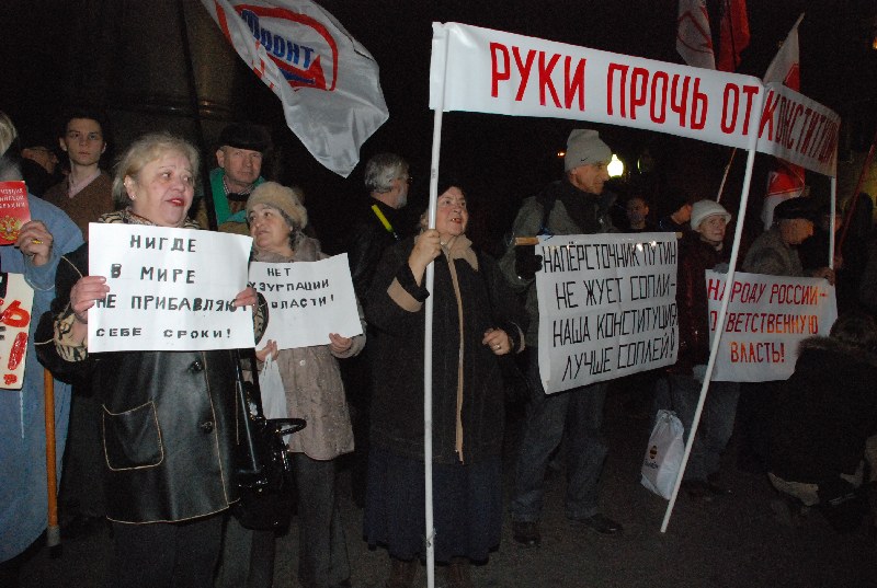 По словам организаторов пикета, в условиях тотальных фальсификаций на выборах, цензуры в федеральных СМИ и преследований оппозиции увеличение президентского срока открывает дорогу к установлению в России диктаторского режима. Продление полномочий правящей группировки является попыткой президента, правительства и партии "Единая Россия" уйти от ответственности за последствия финансово-экономического кризиса, который набирает обороты в стране, уверены участники акции.
