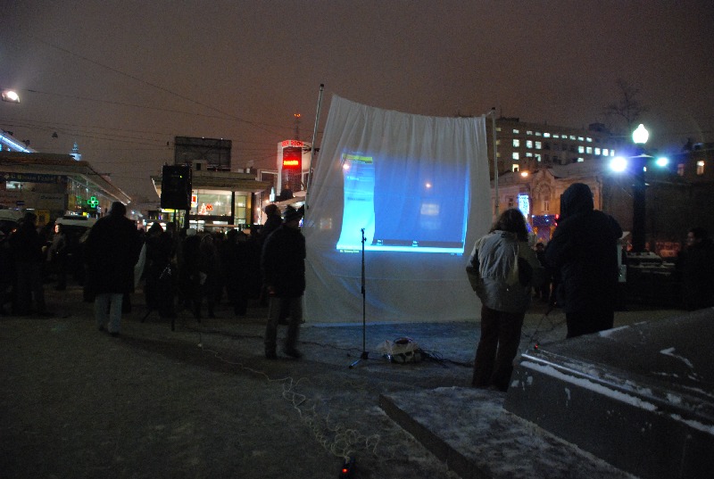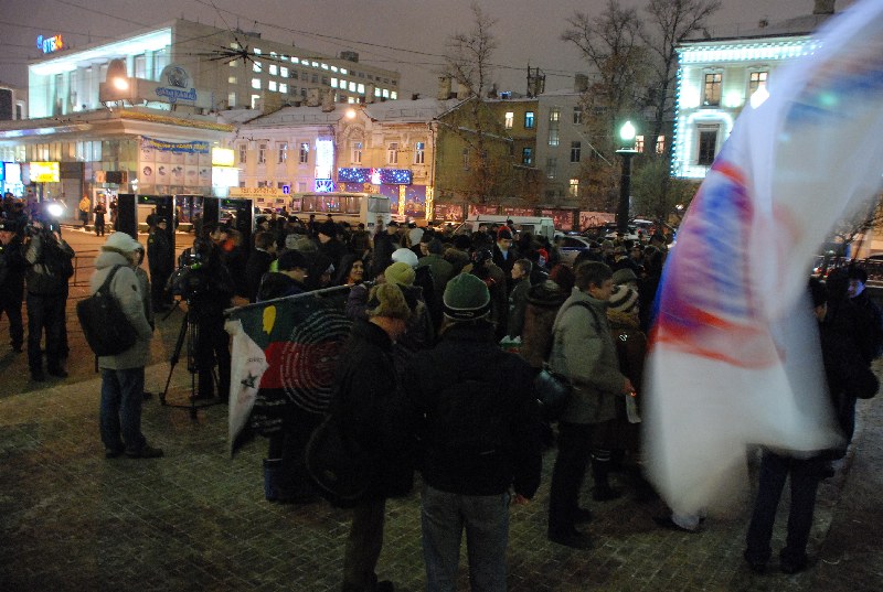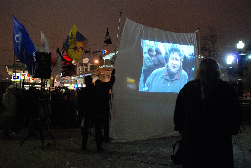 В митинге приняли участие около 200 человек — это активисты "Смены", "Обороны", ОГФ, нацболы и "Свободные радикалы". На большом экране собравшимся был показан ролик, состоящий из фото и видео с акций протеста 2008 года.