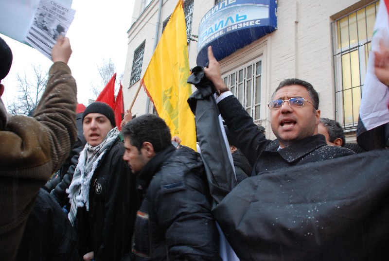 Корреспондент отмечает, что все участники акции — палестинцы, коммунисты и простые граждане — были в платках-"арафатках". Также корреспонденту стало известно, что перед зданием израильского посольства был разрешен только пикет на десять человек, однако милиция не стала препятствовать сбору людей. Даже когда один из участников кинул в сторону израильского посольства некий предмет, милиция не стала предпринимать никаких действий.
