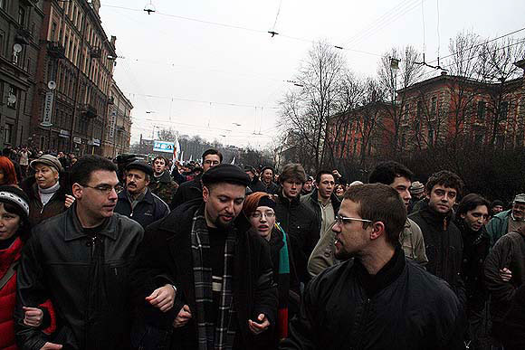 Два года назад в Санкт-Петербурге, несмотря на противодействие властей, состоялся первый по-настоящему масштабный "Марш несогласных". По разным подсчетам, в акции принимало участие от 4 до 5 тысяч человек. Сотрудники правоохранительных органов тогда задержали несколько сотен человек.