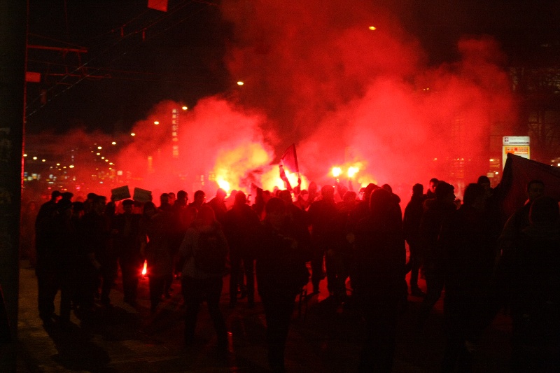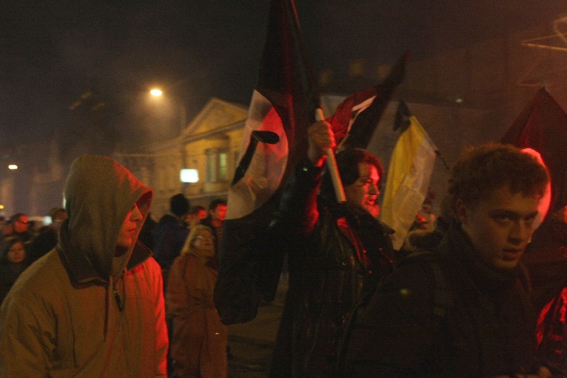 Участники шествия вытащили растяжку "Путина в отставку" и при этом почему-то сожгли портрет президента Медведева. Были еще и файеры. В ночной Москве они смотрелись особенно красиво. Скандировали как обычно: "Нам нужна другая Россия", "Россия без Путина", "Свободу политзаключенным".