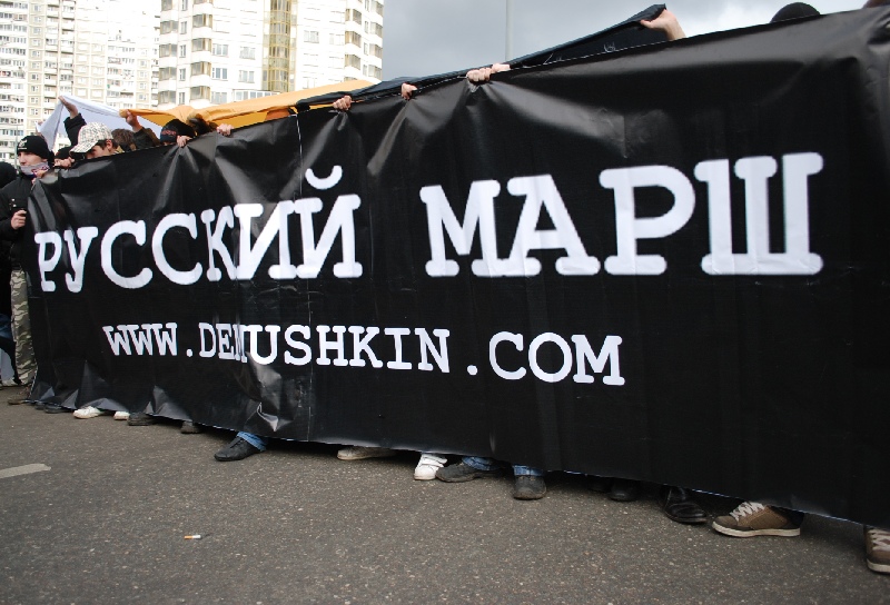 Несколько тысяч человек приняли участие в "Русском марше", который 4 ноября прошел в московском районе Люблино, передает корреспондент Каспаров.Ru с места событий. В акции участвовали ДПНИ, Славянский союз, движение "Сопротивление" и другие националистические организации.