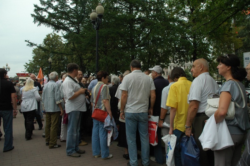 Поддержать демократов пришел лидер "Другой России" Эдуард Лимонов. Он призвал всех собравшихся не участвовать в выборах, исключить себя из списков избирателей и выходить в день голосования на протестные акции.