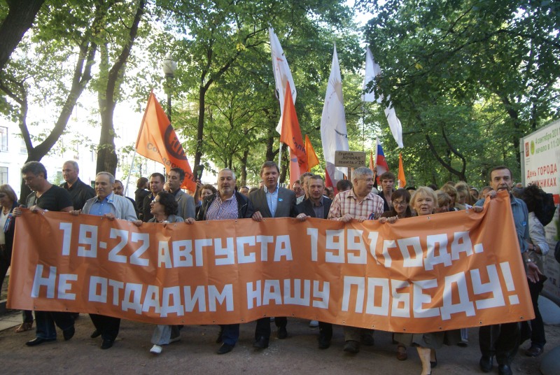 Мероприятия, приуроченные к 20 годовщине победы сторонников демократии над ГКЧП, 21 августа провели в Москве демократы и левые.
