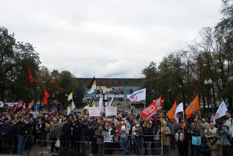 В Москве на Пушкинской площади состоялся оппозиционный митинг с требованием отставки действующей власти. Об этом 25 сентября сообщил корреспондент Каспаров.Ru с места событий.
