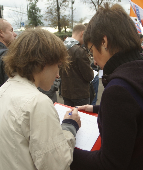 Кроме того, на Пушкинской площади движение "Солидарность" проводит очередной опрос-голосование "Честные выборы. Глас народа".