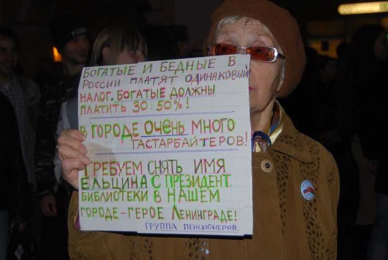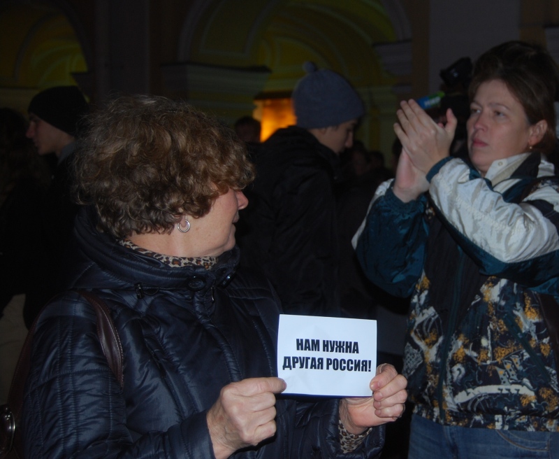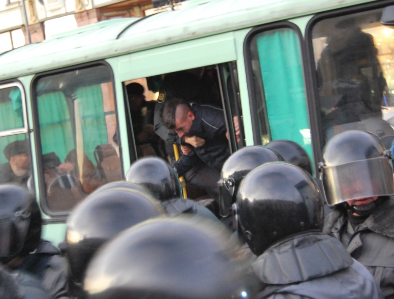 Оппозиционеры, пришедшие к Гостиному двору, двинулись в сторону Смольного, но дорогу им преградила полиция. Омоновцы задержали около 30 человек, в том числе лидера петербургского отделения ОГФ Ольгу Курносову.