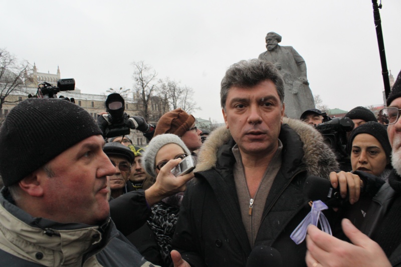 13:49 Наши корреспонденты передают с площади Революции, что там уже собралось около тысячи человек. Среди них обнаружили провокаторов и Бориса Немцова, который должен без эксцессов довести колонну до Болотной площади.