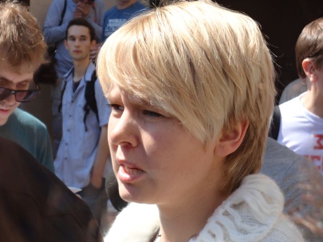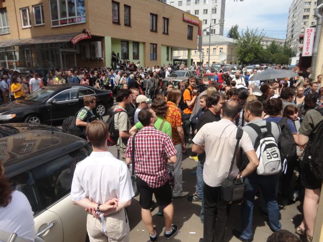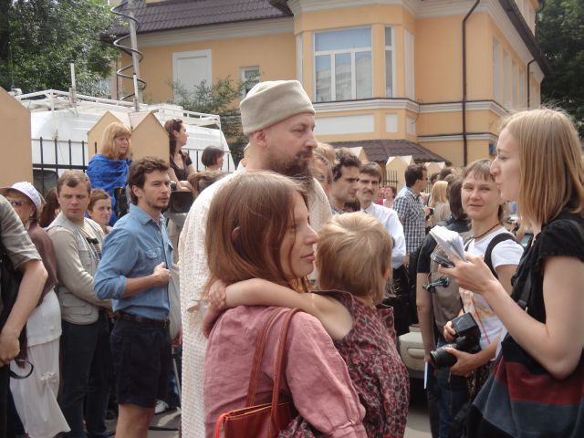 Поддержать участниц группы пришли писатель Дмитрий Быков и вокалист группы "Тараканы" Дмитрий Спирин.