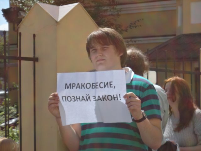 Всего у суда находятся порядка 100 человек, многие из них пришли с плакатами. При этом среди собравшихся как сторонники, так и противники активисток.