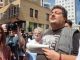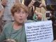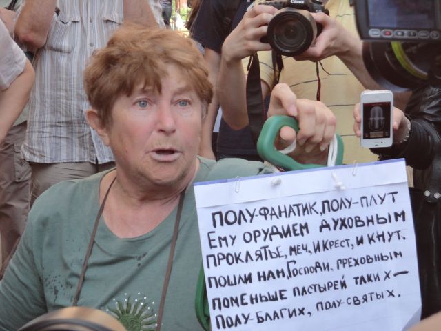 Задержаны еще около 8 человек, полицейских освистывают при помощи свистков. Среди задержанных женщина с плакатом "Бог есть любовь".