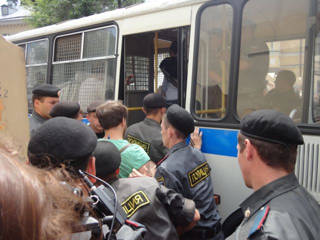 Таганский суд продлил арест одной из участниц Pussy Riot — Надежды Толоконниковой до 24 июля. У здания суда продолжается акция протеста, которая сопровождается задержаниями. Об этом 20 июня с места событий сообщает корреспондент Каспаров.Ru.