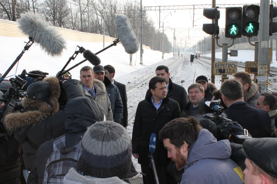 Вокруг приехавшего Воробьева сразу образовалась толпа из журналистов и местных жителей. Его сопровождали представитель РЖД и глава местной администрации, а также мощные охранники. Глава Подмосковья тут же дал спонтанное интервью. Он заявил, что уже решено выделить 1,5 млрд рублей на оборудование 16-ти станций в регионе переходами. Финансировать проект будут подмосковные власти совместно с местными администрациями. "РЖД тоже внесет свой вклад", - сказал он.