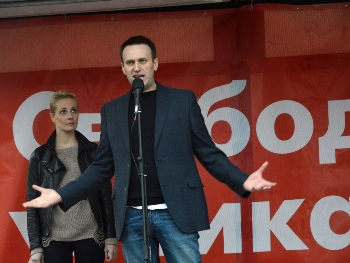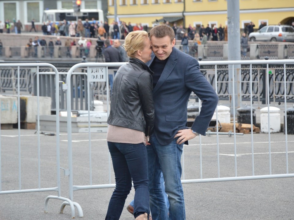 Не мог обойтись этот митинг без выступления Алексея Навального, который пришел на акцию вместе со своей супругой. "Новый лозунг я не принес сегодня, зато пришел с женой, может, это и есть новый лозунг: "Приходи с женой или мужем!" — сказал он. —