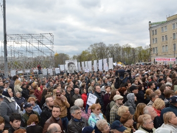 6 мая в Москве мирно прошел митинг в поддержку "узников Болотной". С импровизированной сцены выступали политики Борис Немцов, Геннадий Гудков, Алексей Навальный и родственники "узников". Журналист Олег Кашин с трибуны исполнил песню "Гражданской обороны", а Сергей Митрохин предложил выдвинуть Геннадия Гудкова в губернаторы Московской области от оппозиции.