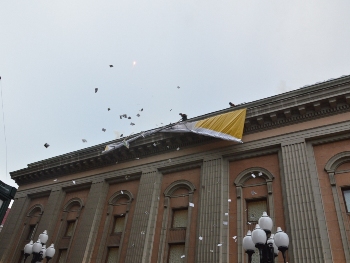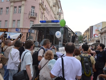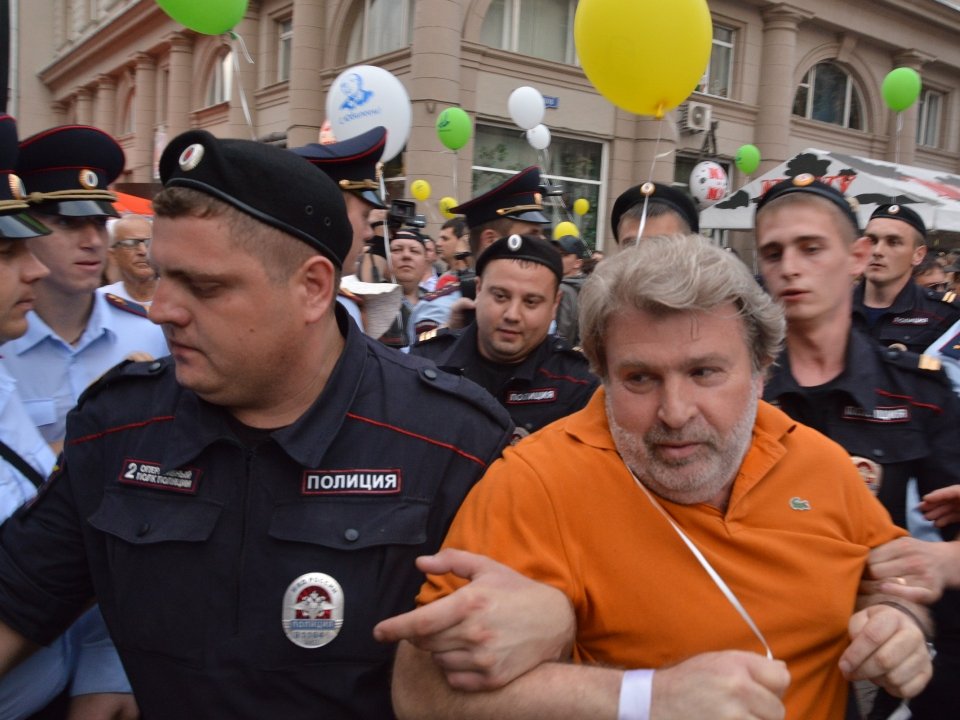 Возле памятника Булату Окуджаве на Арбате участники скандировати "Россия будет свободной" и "С днем рождения", после чего сотрудники полиции начали задерживать активистов. Всего было задержано более 45 человек.