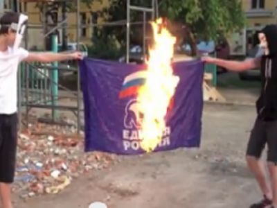 Оказывается, за "глумление" над флагом "Единой России" теперь можно получить срок: