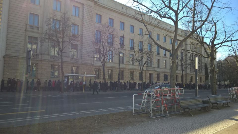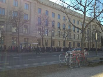 Что я наблюдала в Берлине? В 9 утра, когда в центре на улице Унтер ден Линден можно было встретить лишь приезжих, бегунов и собачников, у российского посольства уже стояла небольшая очередь. Ближе к 10 часам утра она растянулась на целый квартал и не уменьшалась примерно до 16 часов. Потом людей стало снова меньше, но то и дело подходили желающие.