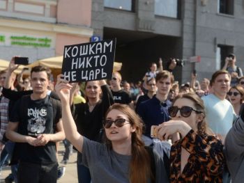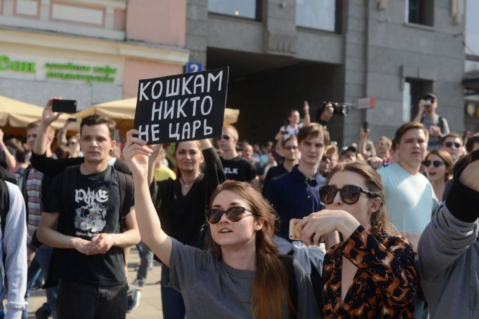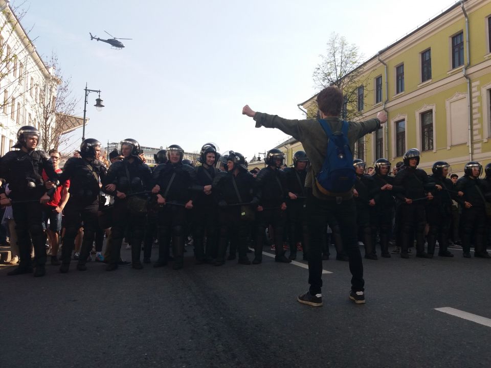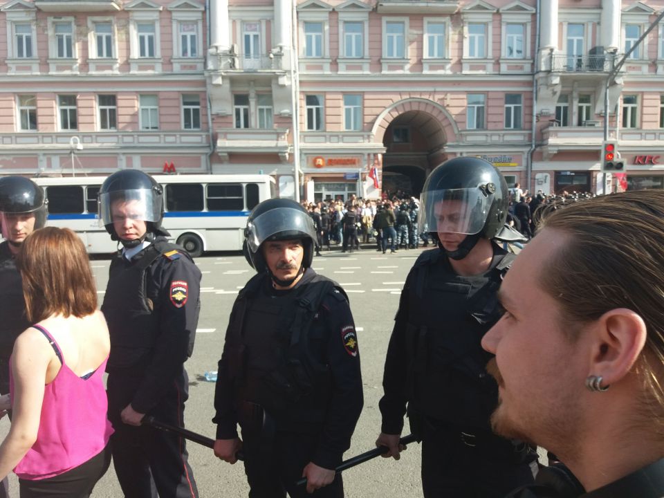 Навальный призвал своих сторонников и всех несогласных с "переизбранием" Владимира Путина выйти на Пушкинскую площадь. Уже в 13:30 атмосфера на площади была давящей: жара, духота, противостояние казаков и нодовцев с начинающими собираться свободными гражданами. На подступах сотрудники полиции обыскивали подростков и требовали документы.