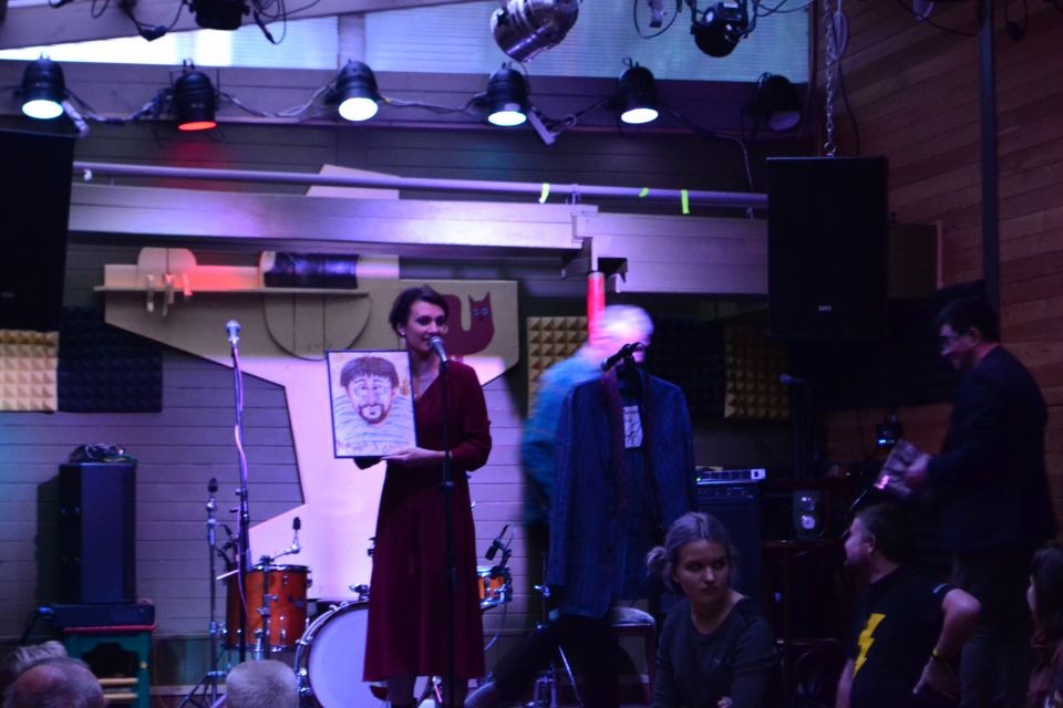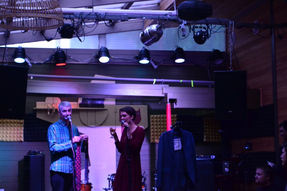 Вели аукцион Алексей Паперный и Ирина Вилкова. Они не только во всей красе описывали лоты, но и сами облизнулись на несколько вещей. Вилковой приглянулся один из галстуков Парфенова от Kenzo и картина Петрушевской, которую она собралась подарить маме. Продала она кое-что и из своих вещей — кольцо из Индии, которое сняла с пальца прямо на сцене.