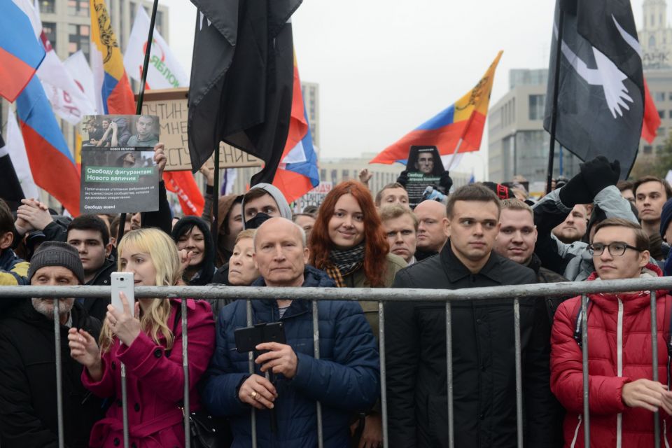 Еще перед митингом приятные молодые ребята раздавали плакаты с лицами фигурантов "московского дела". Кто-то пришел со своими плакатами: большими транспарантами и маленькими листочками с написанным от руки текстом. Возле сцены столпились члены разных партий: рядом с представителями левых движений мирно соседствовали либертарианцы. Традиционно развивались флаги "Солидарности" и "Яблока".
